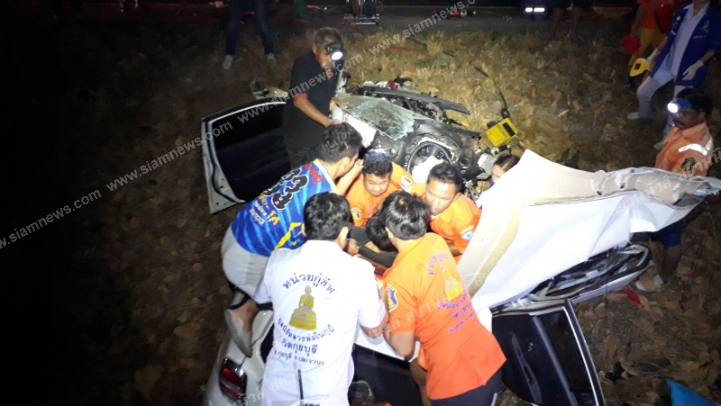 ที่เกิดเหตุพบรถเก๋งนิสสัน มาร์ช สีขาว ทะเบียน 9 กข 7467 กรุงเทพมหานคร ตกอยู่ในร่องกลาง สภาพด้านหน้ารถพังยุบ มีร่องรอยการชนต้นไม้จนล้อหน้าขวาหลุดกระเด็นออกมา ข้างรถพบหญิงคนหนึ่งนั่งอยู่ ได้รับบาดเจ็บ ทราบชื่อว่า น ส นิติพร ละมุดทอง อายุ 20 ปี ที่ริมถนนพบเด็กชายวัยประมาณ 4 ขวบ และ 2 ขวบ มีชาวบ้านช่วยอุ้มอยู่ ร้องไห้หาพ่อกับแม่เสียงดังลั่น